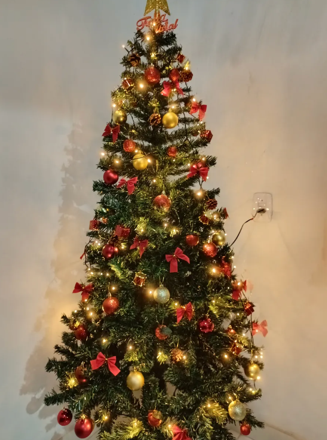 Compré dos árboles, le regalé uno a mi madre y ya puse el otro. Qué alegría, mi primer árbol de Navidad!