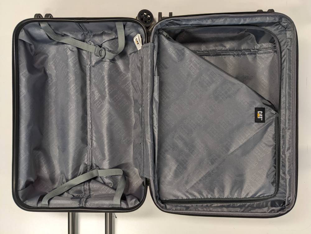 Interior con cremallera completa con divisor y correas cruzadas